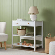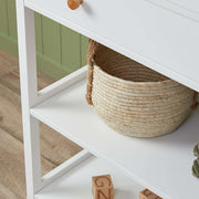 This white change table includes a drawer and two shelves to store nappies and clothes easily. Tailored to fit our Change Mats, it makes changing time convenient. Perfect for first-time parents or those looking for an affordable, stylish option for their nursery.