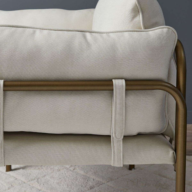 The neutral natural colour cushions give your home a bright, relaxed look, while the bronze legs add a touch of luxe style. The perfect occasional chair to go with your lounge or sofa, it adds cosy style to your home. Outside of the lounge room, you'll love the cushy vibe this chair adds to a bedroom, office, or other living space.