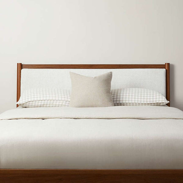 Elevate your bedroom with the charm of Japandi design embodied in the Blair Queen Bed - Walnut. Boasting solid wood tubular legs and a dark wood-look finish, this bed is a fusion of style and strength. Crafted for comfort, it features strong bed slats and a plush upholstered bedhead, providing a serene haven for restful nights.