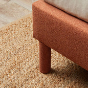 Add timeless style to your bedroom with the Melvin Queen Bed in Clay. Featuring a sturdy frame made from MDF, Pine, and plywood slats, this modern coastal design suits relaxed, natural spaces. Its curved bedhead and textured clay fabric lend warmth and elegance, pairing perfectly with wooden furniture and neutral-toned bedding. A chic choice for any contemporary home.
