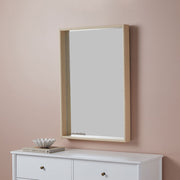 Enhance any modern space with this mirror. Its rectangular shape and natural tones effortlessly complement various interior styles, adding that final touch of sophistication.
