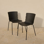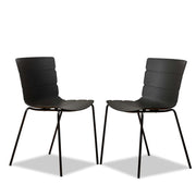 Upgrade your outdoor dining with the Ravello Outdoor Dining Chair - Set of Two in sleek black. Featuring sturdy powder-coated metal legs and a ribbed plastic seat for comfort, these chairs are stylish and practical. Perfect for patios or garden spaces, they stack easily for storage and add a modern touch to any outdoor setting.