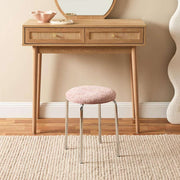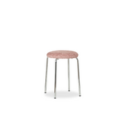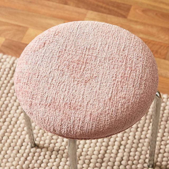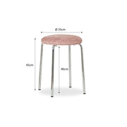 With a soft pink chenille seat and mid-century chrome legs, this stool complements modern spaces. Its chic design enhances make-up tables or any area needing a subtle pop of colour.