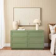 The Eros Six Drawer - Sage Green adds a stylish statement to your bedroom. The perfect dresser design, it has a sleek profile and elegant shaker style drawers. The sage green colourway is on-trend, helping you bringing the beauty of the outdoors inside.