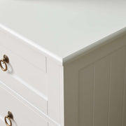 We love the classic white finish and shaker style cabinetry which is quintessential to the Hamptons style. Accented with metal ring handles and VJ wooden panel detailing on the sides, this side table adds a relaxed elegance to your home. With this classic style, you'll find it easy to style into any room with a wide range of bedlinen and accessories.