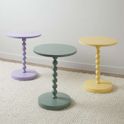 Enhance any room with the versatile Bobbin Side Table in an on-trend sage green. Featuring a painted finish and a solid wood bobbin-shaped leg, this piece seamlessly fits as a side table or bedside table. Its calming green tone suits modern and classic decors alike.