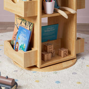This kids' bookshelf provides shelves and pockets for convenient storage of books and treasures. The whole unit rotates to allow access from all angles.