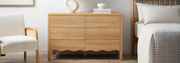 The versatile Malena collection is defined by its signature wave-style detailing and textured wood-look finishes. Each piece features subtle scalloped edges that add charming visual interest without overwhelming the design. Malena delivers practical storage through drawers, cupboards, and open shelving – perfect for hallway essentials, study zones, or decorative displays. Thoughtfully proportioned to fit narrow entryways or cosy bedrooms, this collection brings relaxed elegance and coastal warmth into every corner of your home.