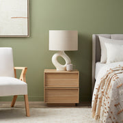 Featuring two pull-to-open drawers, this bedside table provides ample storage for your essentials. The unique border design doubles as discreet and stylish drawer handles, ensuring ease of use.
