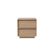 Enhance your bedroom with the Scandi-inspired Osaka Bedside Table. It features a light blond wood-look finish and perfectly fits modern and minimalistic settings. The table includes two practical drawers with a unique border design that serves as handles, offering both style and functionality for your personal space.