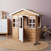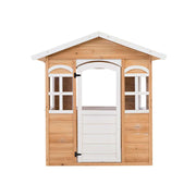 Discover the perfect play space for your little ones with Mocka's Kids Cubby House. Made from sturdy wood with five windows, this charming cubby is ideal for children aged 2 and up. Its natural wood and white paint design suits any indoor or covered outdoor area. Give your kids a special place to grow, play, and imagine with this versatile cubby house.
