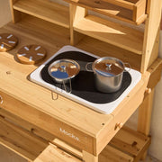 The removable plastic tub is great for sand, rocks, or water play. Combined with metal utensils and pots, it encourages kids to explore hands-on creativity and imaginative cooking.