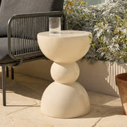 The Emilio Outdoor Side Table suits both indoor and covered outdoor areas. Its modern, sculptural shape adds style, while the beige tone complements a variety of room setups.