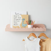 Bring a touch of whimsy and colour to your child's room with the adorable Sarah Scalloped Wall Shelf in Soft Pink. Featuring a charming scallop trim, this delightful wall shelf is perfect for nurseries or kids' bedrooms. Ideal for displaying books and décor, it complements neutral tones or can be paired with vibrant hues for a fun, lively space.