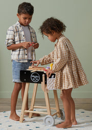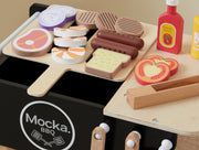Cook up some fun with the Kids Modern BBQ crafted in natural wood and designed with a uniquely Australasian twist including sausages and prawn skewers.