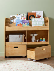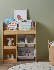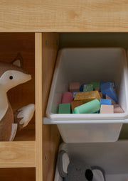 Conveniently stow away the day's toys and crafts with these easy-to-access, removable, plastic tubs.