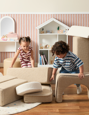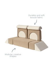 Foster early interaction with shapes and movement with the Mocka Motor Bus. Little ones delight in pretend play while developing essential motor skills. Play becomes limitless with the Modular Play Sofa. Soft textures support sensory discovery, while endless configurations spark creative play and imagination.