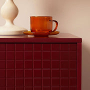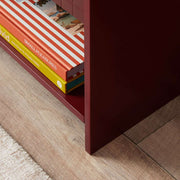 The Amos Checkered Bedside Table in Shiraz is perfect for a pop of colour in any bedroom. It features one top drawer and an open shelf for easy display. Made from solid MDF, this table is simple to assemble. The checkered drawer front and dark shiraz red tone add a cool, retro touch to your space.