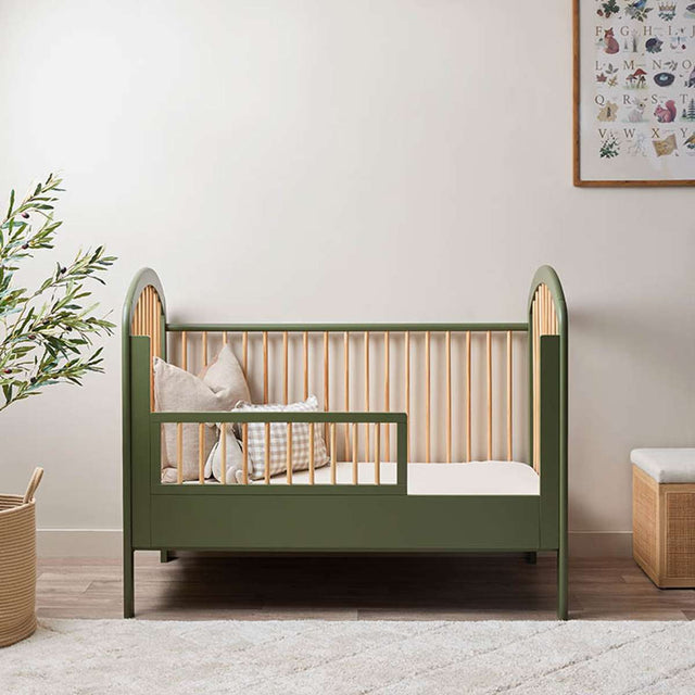 Introducing the Archie Cot Toddler Bed Half Frame in Moss/Natural – a perfect addition to your little one’s room. Effortlessly convert your Archie Cot into a toddler bed for safe, easy access. The calming moss green creates a tranquil and sophisticated nursery, making the transition smoother and prolonging the life of your cot. Simple to install and stylish.