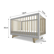 The ever popular Aspen Classic Cot - White/Natural offers quality modern nursery furniture all at an affordable price! Create the nursery of your dreams and a space for your baby to sleep warm and protected with this stylish cot. Available in white with natural, the simple design will fit easily into any nursery styling. The adjustable slatted base features a newborn setting as well, so you can raise or lower depending on your babies age and development. Bring fresh style to your nursery with this trendsetting cot. This cot fits our Mocka cot mattresses, and you can purchase the Cot and Toddler Half Frame together in our 3-in-1 cot conversion bundle.