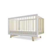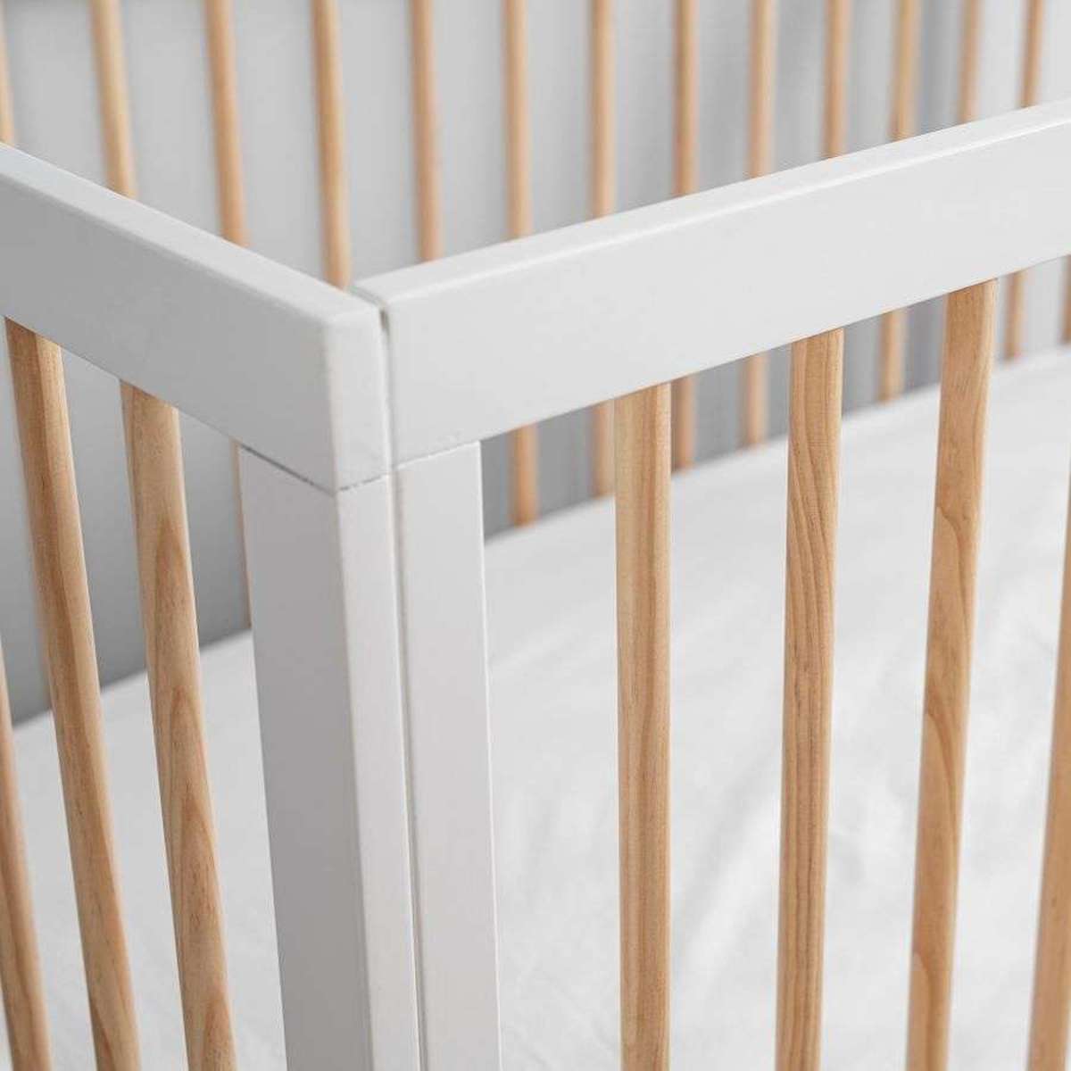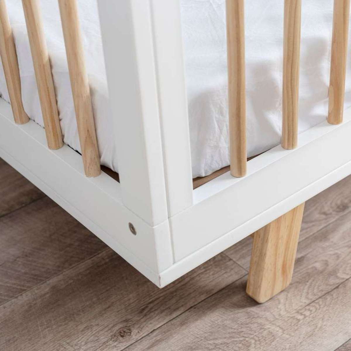 The ever popular Aspen Classic Cot - White/Natural offers quality modern nursery furniture all at an affordable price! Create the nursery of your dreams and a space for your baby to sleep warm and protected with this stylish cot. Available in white with natural, the simple design will fit easily into any nursery styling. The adjustable slatted base features a newborn setting as well, so you can raise or lower depending on your babies age and development. Bring fresh style to your nursery with this trendsetting cot. This cot fits our Mocka cot mattresses, and you can purchase the Cot and Toddler Half Frame together in our 3-in-1 cot conversion bundle.