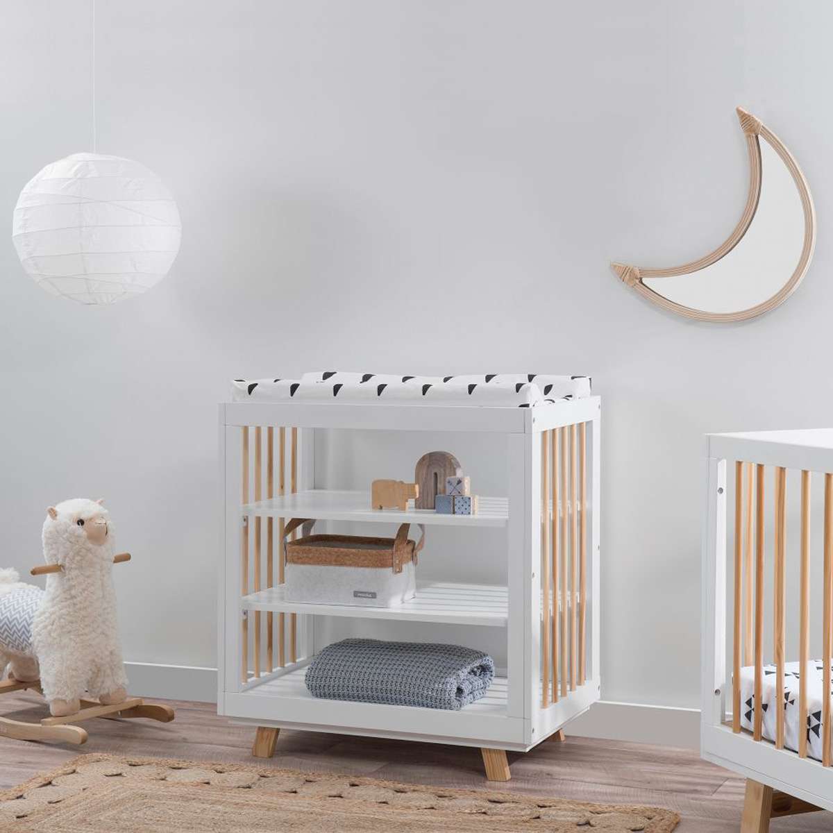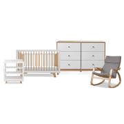 Thoughtfully designed in a timeless white and natural colourway and inspired by Scandinavian design principles, this ensemble pairs with any nursery decor. Together, these fit out your space, making it a comfortable and beautiful sanctuary for your little one.