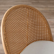 • Retro coastal charm with a curved rattan back