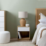 The Avoca Bedside Table is a bright and airy side table perfect for creating a modern coastal bedroom. With its clean lines and white/natural finish, this bedside table will suit your primary bedroom, guest bedroom or around the home.