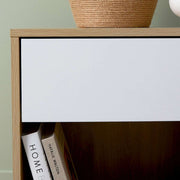 It features a convenient sliding drawer that easily glides open to reveal ample storage space for all your bedside essentials. The open shelf below is the perfect spot for storing books, magazines, or decorative accents.