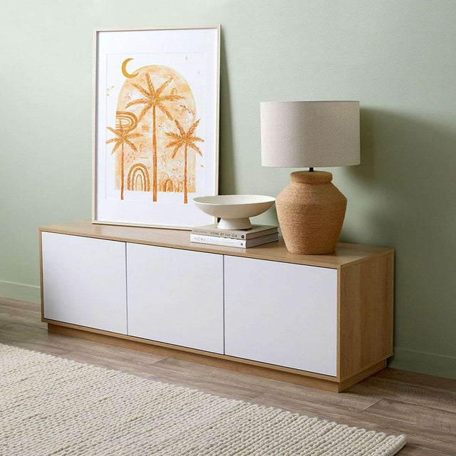 A stunning centrepiece for your living space, the Avoca Entertainment Unit is all about that modern coastal vibe. While sleek and low-line, it has a beautiful blend of white and natural finishes, giving your home an effortlessly light and airy style. With three spacious white cupboards, it's a real storage superstar, perfect for organising your living room and getting rid of clutter.