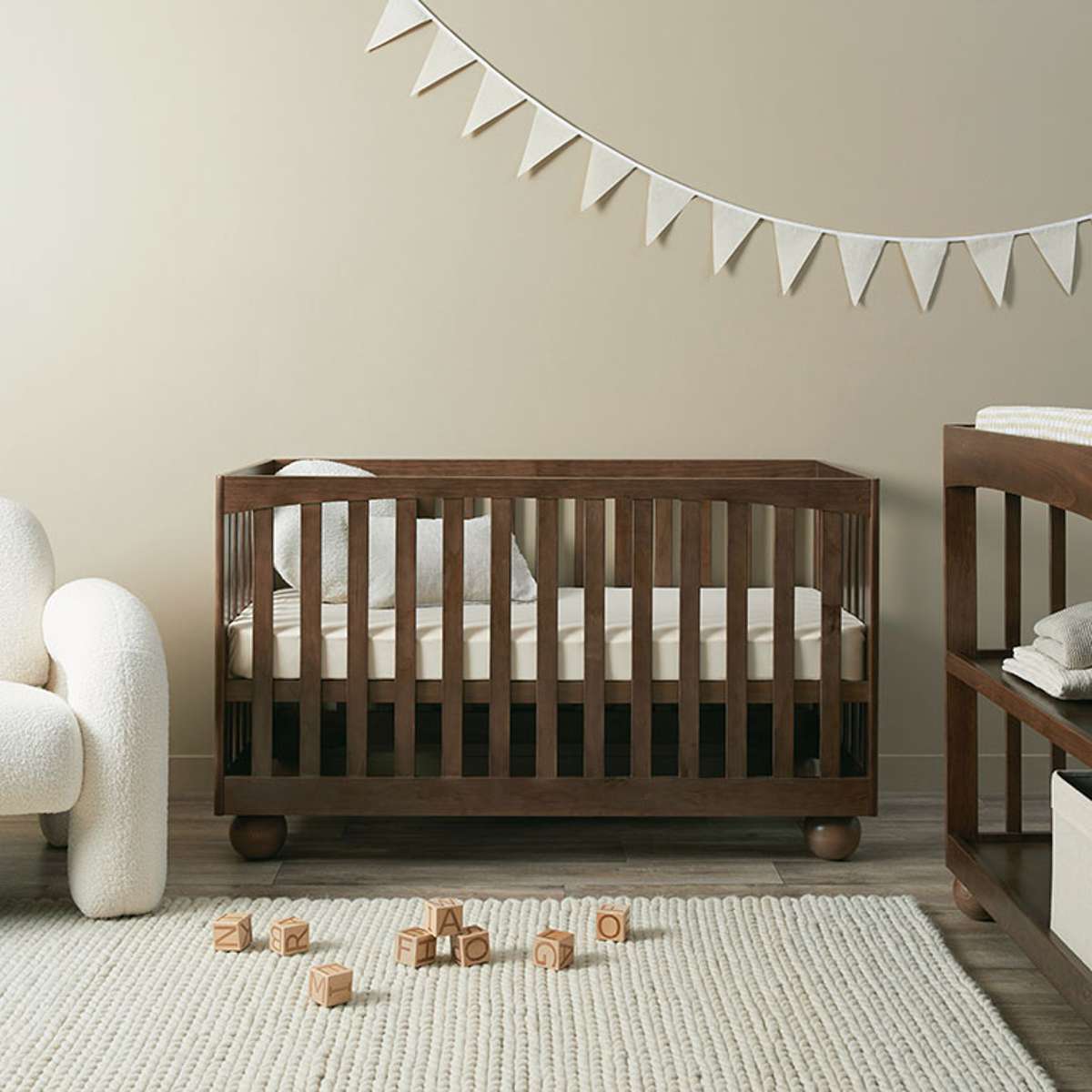 The Blake Cot in Almond is a stunning centrepiece for any nursery. This versatile cot seamlessly blends gentle curves with solid wood ball legs, creating a timeless design suitable for both boys and girls. With its adaptable features and stylish appearance, the Blake Cot offers long-lasting value without compromising on aesthetics. This cot fits our Mocka cot mattresses, and you can purchase the Cot and Toddler Half Frame together in our 3-in-1 cot conversion bundle.
