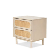 Add a touch of modern coastal charm to your bedroom with the Canyon Two Drawer Bedside Table. Featuring two sliding drawers with rounded rattan-look fronts, solid wood legs, and a soft beige tone, this stylish table perfectly blends functionality and design. Its neutral tones and natural materials make it ideal for relaxed, contemporary spaces.