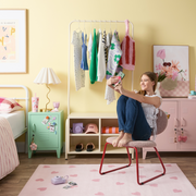The Charley Easy Chair offers a padded seat and back, making it a cosy spot for relaxing. Its soft pink upholstery provides great comfort, whether you're reading or watching TV.