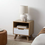 Reimagine your bedroom or living space with the Mocka Chelsea Bedside Table. Boasting both a drawer and open shelf storage, keeping essentials within easy reach (not to mention adding a chic style option to a room) has never been easier.