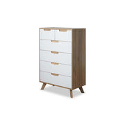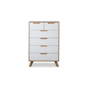Inspired by the elegant, bright style of the Hamptons, the Chelsea Tallboy is bound to transform any New Zealand bedroom. You'll add magazine-worthy elegance to any living space with this unit that is big on storage and even bigger on gorgeously chic style. In a tall dresser design, this unit features four large and spacious sliding drawers, with two smaller sliding drawers at the top. With this tallboy, you'll be able to maximise the storage space in your home and keep everything tidy and out of sight. The chic pairing of light timber and crisp, white drawer fronts brightens and revitalises, adding vibrant style to any interior. Perfect for the nursery, bedroom, or even in the office, this is a signature piece that will have everyone who enters your home asking 'where did you get that?'