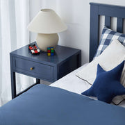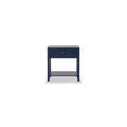 With its stunning Midnight blue finish and coastal-inspired design, the Cove Bedside Table - Midnight offers more than meets the eye. This versatile piece, fitting as a side companion for your bed or sofa, boasts a drawer and a lower shelf, providing ample storage and display space. Featuring a classic coastal shaker profile and brushed bronze accents, it's a blend of function and understated elegance.