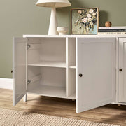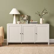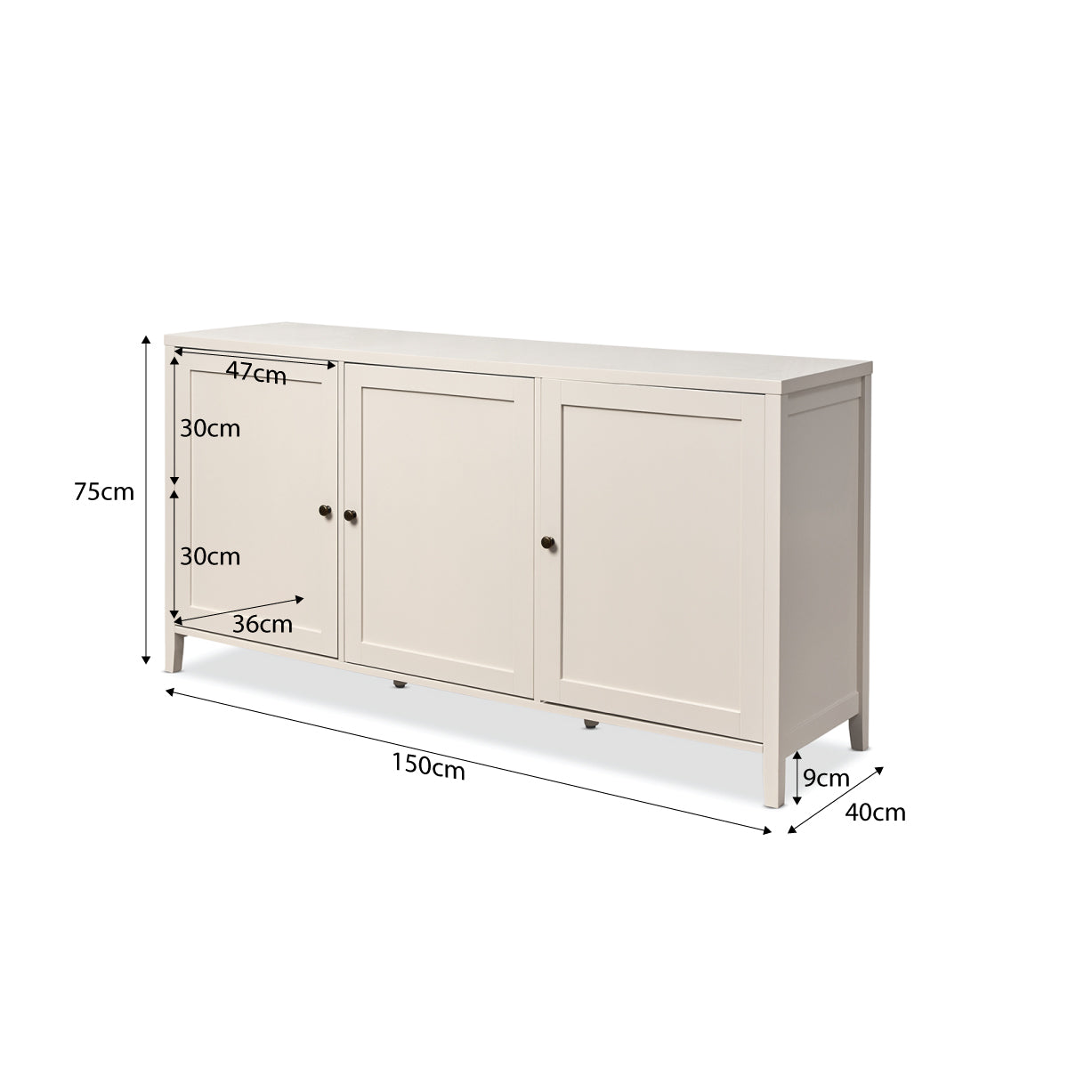 Upgrade your home with the stylish Cove Buffet. Featuring a sturdy MDF frame, brass knob handles, and timeless shaker-style cupboard doors, this cream beige buffet adds a warm, farmhouse touch to bedrooms, dining areas, or lounges. With three spacious cupboard doors and a handy shelf inside, it’s a functional and elegant storage solution.