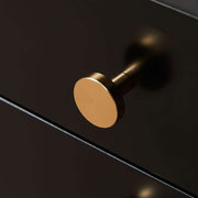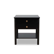 The Delaney Bedside Table offers a timeless farmhouse style with a sleek black finish and gold handles. It fits well in both cosy and modern rooms, enhancing any decor.