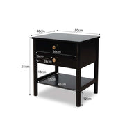 With two sliding drawers, you can keep your essentials organised and out of sight. The table also includes a shelf for easy-access items, making your space tidy and neat.