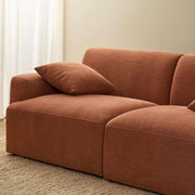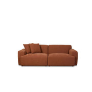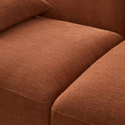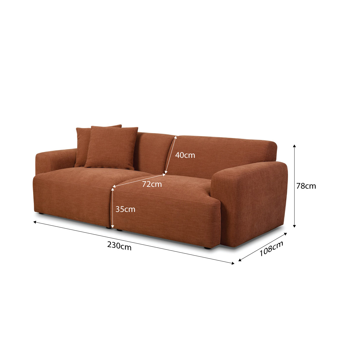 Make lounging a breeze with the Dylan 2.5 Seater Sofa. Featuring deep seats, a chunky, rounded shape, and soft linen-blend fabric in a stylish rust colour, this sofa is perfect for modern living rooms. Enjoy added comfort with included throw cushions, and pair with the matching ottoman for a versatile chaise option.