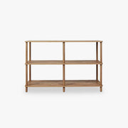 The Eden Low Shelf's open design makes it easy to store and display your items. Its dark wood colour adds a modern touch, making it perfect for any room.