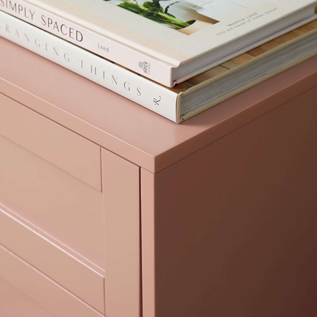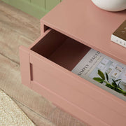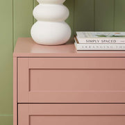 The clay pink colour and shaker-style drawer fronts of the Eros Bedside Table add a trendy touch, making it a charming addition to any bedroom or kids' room.