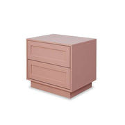 The Eros Bedside Table - Pink is perfect for modern coastal living. Made from durable MDF, it features two push-to-open drawers for ample storage. Its trendy clay pink colour and shaker-style drawer fronts will complement any bedroom or kids’ room beautifully.