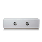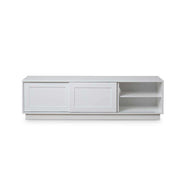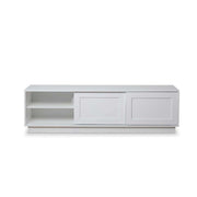 The Eros Entertainment Unit - White is the stylish centrepiece you've been looking for in your living room. It's shaker style cupboard doors and sleek profile creates a sophisticated statement in any lounge room, or media space. The bright, white colourway is fresh and elegant with a look that will suit any home.