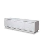 The lowline profile is perfect under a wall mounted TV, with plenty of surface space for soundbar and decor. Three cupboards offer essential storage for your entertainment devices, with sliding doors that are easy to access smoothly and quietly.