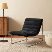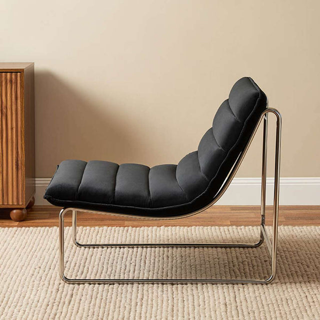 Upgrade your space with the Frank Ribbed Occasional Chair in sleek black velvet. Featuring a comfy ribbed seat cushion and a sturdy metal frame with trendy chrome legs, this chair blends mid-century charm with modern style. Perfect for living rooms, bedrooms, or study nooks, it brings a touch of everyday luxury to any room.