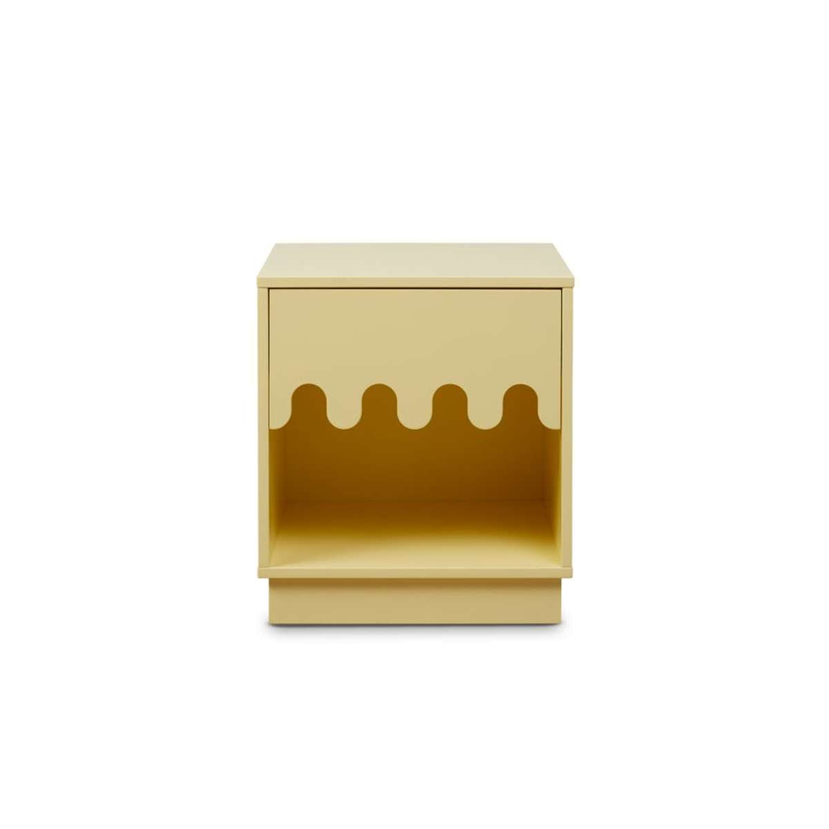Add a playful touch to your bedroom with Mocka's Ice Cream Bedside Table in soft yellow. Featuring a unique drip-detail drawer and practical shelf, it’s perfect for storing bedtime essentials. This buttery yellow pairs beautifully with creams, pinks, and natural wood tones, making it a great addition to youthful spaces or trendy interiors alike.