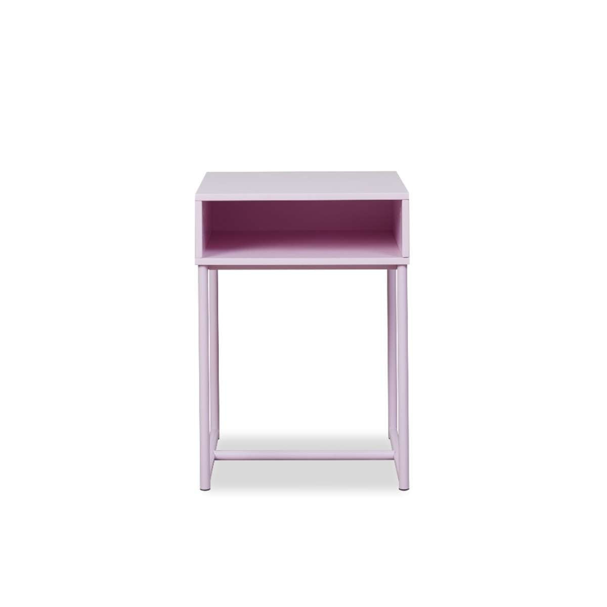 The Jude Bedside Table - Lilac is a stylish and functional piece with an open shelf and sturdy metal frame. Its sweet lilac tone makes it perfect for a child's bedroom or as a handy side table in the living room. Ideal for smaller rooms, its compact size fits beautifully anywhere.