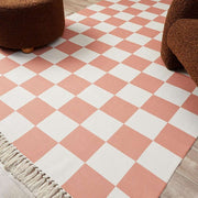 Introducing the Kobie Checkerboard Rug in Rust – a perfect addition to any home. This durable cotton blend rug features a neutral base with warm rust checkerboard patterns. It pairs well with neutral decor or other earthy colour tones, making it a versatile choice for living rooms, bedrooms or dining areas.