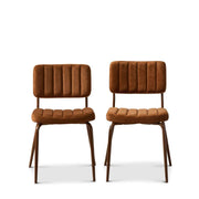 Upgrade your dining space with the Louie Dining Chair - Set of Two in Chocolate Velvet. Featuring a cushioned ribbed seat and back, durable metal legs, and a mid-century inspired design, these chairs bring comfort and style to any dining room or kitchen. The dark brown velvet finish pairs perfectly with modern or classic interiors.